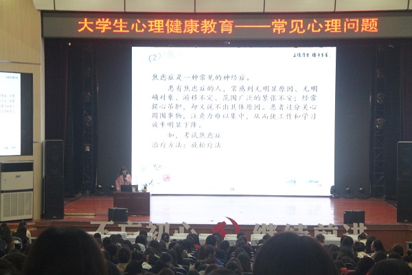 心理健康教育老师围绕“大学生适应和人际关系”对17级大一新生进行辅导讲解。从如何认识大学的问题导入,分析当下新一代大学生的心理特点,大学生入学面临的学习生活、人际关系和角色转变的问题,并指出大学生可能出现的失落感、孤独感和挫折感等心理不适应问题。之后,心理健康教育老师对学生如何调适心态更好地适应大学生活给予方法指导,用通俗易懂语言与台下学生进行心与心、面对面的交流;针对16级大二学生,老师们以“大学生常见心理问题”展开主题教育辅导。首先,对当前大学生常见心理问题进行了总结归纳,剖析了存在的原因,并指出了大学生对日常心理健康教育存在的误区,系统地讲解了危机干预的相关知识,并对如何识别心理问题的症状、如何帮助学生处理心理困惑进行有针对性地讲解。心理健康教育老师的辅导授课让大家受益匪浅,给更大范围的学生解答了许多面临的困惑和误区,对学生日常管理教育和心理辅导工作具有很强的指导意义。