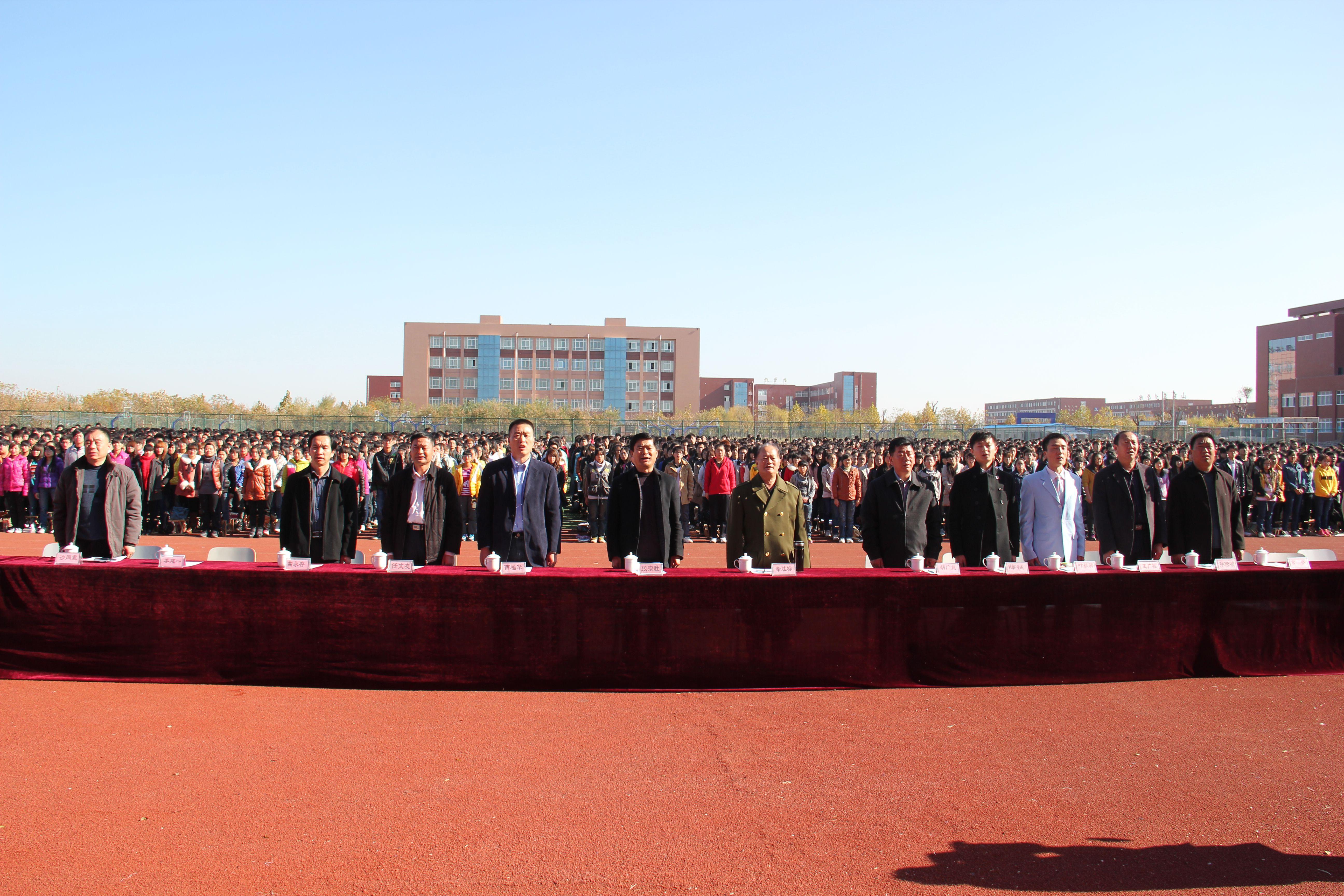 出席感恩教育的领导、嘉宾与全体同学齐唱中华人民共和国国歌