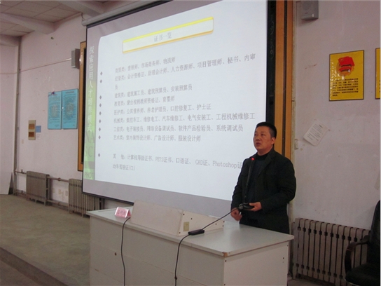 王主任的主题培训共分职业资格证书制度、双证书制度、我院双证书制度发展现状、常见问题四个部分。王主任在培训中强调了“职业资格证书与学历文凭并重,职业资格证书制度与就业制度相衔接”,并对职业资格证书的种类及级别、证书颁发流程等做了详细介绍。对资格证书的报考时间、学生入学教育、职业资格证书培训管理督促、补考报名、证书管理等做了介绍。