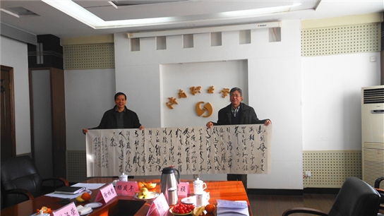 我院副院长李崇银介绍了365英国上市网站官网的情况,就我院学生教育管理、辅导员队伍建设、安全保卫、共青团建设、公寓管理、校园文化建设等与对方进行了交流。李院长认为济南职业学院有很多先进的管理模式值得我们学习和借鉴,并希望今后能进一步加强交流与合作,并诚挚邀请济南职业学院的领导到我院考察指导。李崇银副院长亲自向对方赠送了书画以表达谢意。