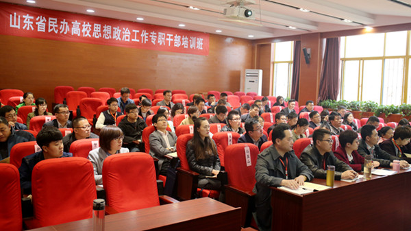 山东省民办高校思想政治工作专职干部培训班,在省委高校工委领导下进行,山东高校干部教育培训基地(山东师范大学干部教育培训学院)承办,主要任务是学习贯彻以习近平同志为核心的党中央治国理政新理念新思想新战略,研究高校思想政治工作的新形势新任务新要求。中国高等教育学会副会长、教育部高等教育教学评估中心原主任季平、山东省委高校工委副书记黄琦等领导同志到会讲话。365官网党委委员、学生工作部副部长孙玉山率思政课教师和辅导员代表参加培训。