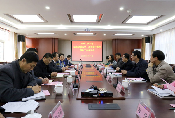 随后,学生工作处龙新良处长介绍365官网学生管理工作情况和建大帮扶365官网学生工作情况;山东建筑大学学生处处长黄居源介绍了建大学生管理教育基本情况及帮扶工作思路,建筑大学团委书记范倩、学生工作处副处长任晓勤等作了发言交流。