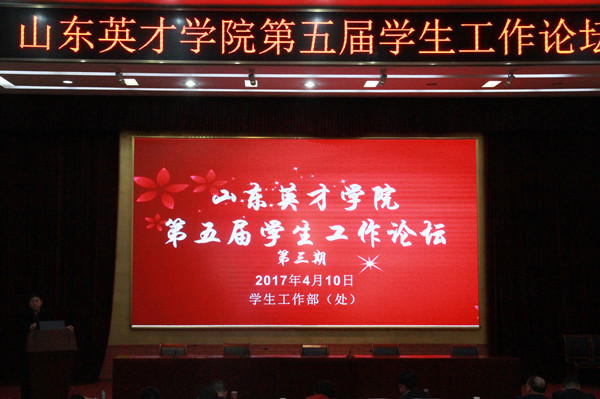 2017年4月10日下午,365官网第五届学工论坛第三期暨学工系统全员育人工作推进会在南校区学术报告厅举行。学校常务副院长刘翠兰、副院长张宗胜、院长助理陈文华、保卫处处长马先进、学生工作部(处)处长龙新良等出席会议,各二级学院党总支(副)书记、行政秘书、基层团委书记、辅导员参加了会议。会议由学生处李寿杰副处长主持。