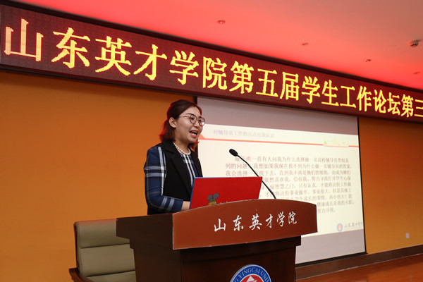 本次学工论坛的主题是全员育人,信息工程学院和外国语与国际交流学院的党总支副书记赵全华、孙志峰、机械学院辅导员徐哲、商学院辅导员张怡,分别就全员育人工作探索、用“四心”教育助力学生成人成才以及在学科竞赛中实践全员育人等方面,总结了二级学院或个人班级管理中对于全员育人工作的经验做法和典型案例,结合自身的工作实际从不同侧面、不同角度作了发言,这些发言贴近学生工作实际,对全员育人工作的具体做法进行了总结和提炼,引起了大家的共鸣,对下一步进一步开展全员育人工作提供了宝贵的经验和建议。