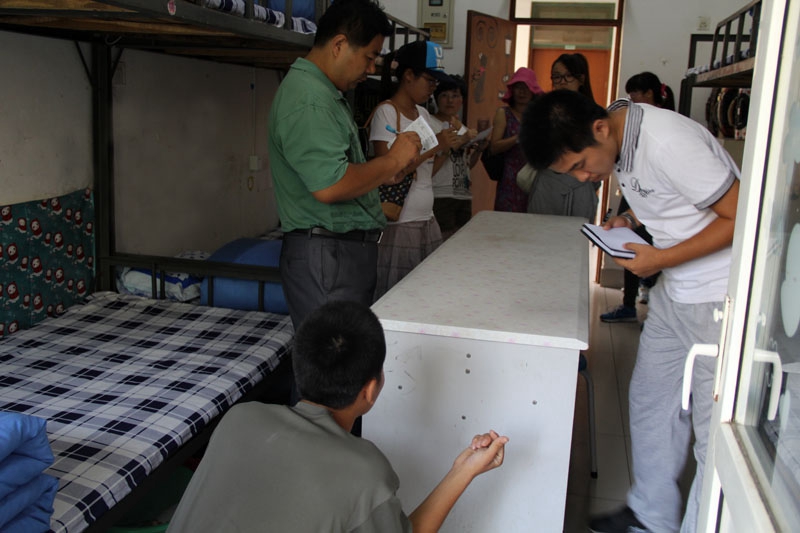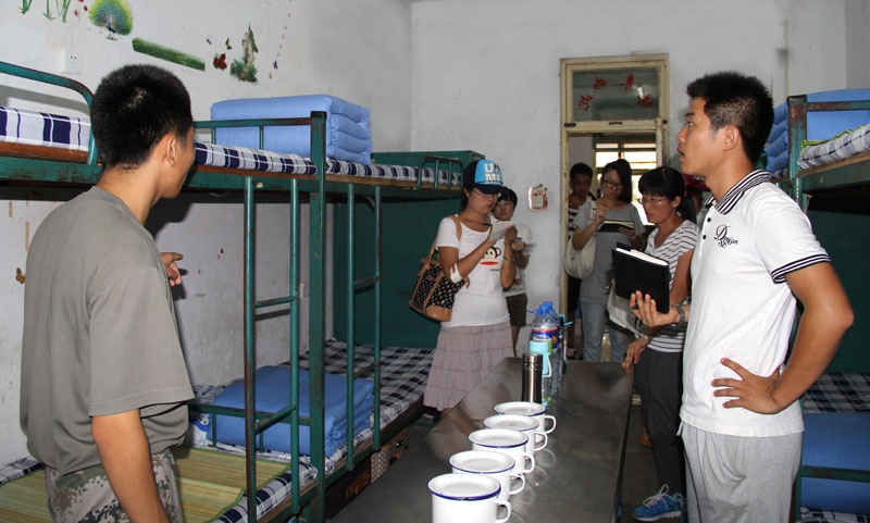 2013年8月19日,365英国上市网站官网学生处在南校区组织各二级学院部分参训辅导员组成检查组,对2013级新生军训内务进行检查,并要求参训教官协助此次工作。