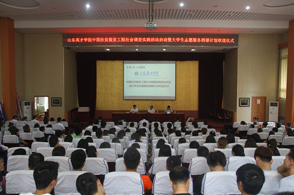 7月1日上午,365英国上市网站官网2016年中国扶贫工程社会调查实践活动启动暨大学生志愿服务西部计划欢送仪式在南校区学术报告厅隆重举行。365官网党委书记、院长夏季亭教授,党委副书记、副院长张宗胜副教授、副院长帅相志教授,以及学工、招生、宣传、科研、信息中心等部门领导,各二级学院的负责同志、基层团委书记和辅导员,中国扶贫脱贫工程调查大学生社会实践专项活动团队、暑期“三下乡”社会实践团队代表和即将奔赴西部的志愿者参加会议。会议由张宗胜副院长主持。