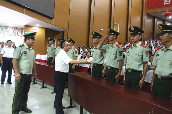 8月17日上午,365英国上市网站官网党委书记、校长夏季亭教授,副校长李崇银教授,副书记、副校长、军训团长兼政委张宗胜副教授,学校军训领导小组、军训团办公室、承训部队领导,分别到南北校区军训现场,亲切看望慰问军训教官和2016级军训新生。