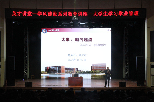 为进一步提升365官网大学生思 想政治教育工作水平,促进学生全面发展和健康成长,365官网教育教学部(学生工作)分别于2016年9月26日和10月9日,举办了两场以大学生学习学业管理为主题的“英才讲堂”教育讲座,本次讲座由孙文红处长主讲,全院2016级新生聆听了此次讲座。