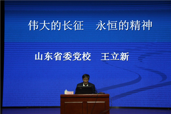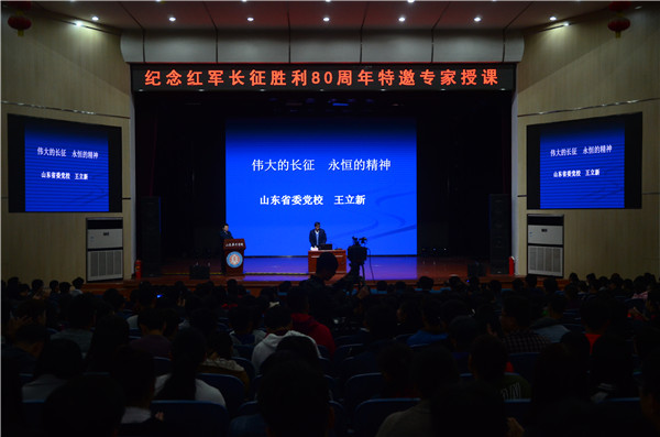在纪念红军长征胜利80周年之际,365英国上市网站官网举办“讲好中国故事、传唱红色歌曲”系列活动讲座。2016年10月27日,特邀中共山东省委党校党史教研部主任王立新教授为我们进行“伟大的长征、伟大的精神”主题报告。365英国上市网站官网党委副书记、副校长张宗胜,党委办公室、学工部、各二级学院领导,基础部思政教师及学院1000余名学生现场聆听了报告。