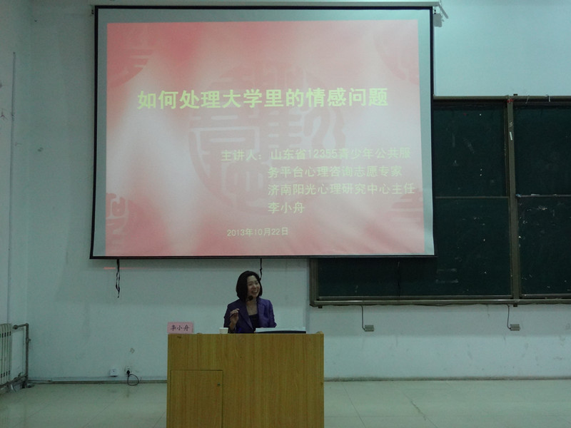 22日下午,根据共青团山东省委“三进”活动安排,学生处承办组织了“大一新生适应性训练”、“职业生涯规划与就业创业”、“大学生应该知道的法律知识”、“如何处理大学里的情感问题”四个平行工作坊。“大一新生适应性训”由济南市基爱社会工作服务中心督导、济南市社会工作协会督导、山东女子学院社工系赵记辉老师主讲,大学生心理健康自我教育委员会、心理健康协会40名学生参训。训练中进行了“心灵之窗”、“九宫格”等游戏,在轻松的气氛中,看似游戏的玩耍中,使同学们的心灵得到成长,引导同学们更好地探索认识自我,激发自信,更好地渡过大学生活。“职业生涯规划与就业创业”专题讲座由山东省青年创业就业基金会导师、山东巴比伦工贸有限公司董事长、济南市工商联常委、济南工商联直属商会副会长刘建新主讲。南校区二级学院就业副院长、就业干事、300余名大学生参加了此次讲座。刘建新董事长分享了自身的创业经历,告诫大家要创业先就业,鼓励大家提早做职业生涯规划。讲座还进行了热烈的互动,现场气氛热烈,同学们纷纷表示刘董事长的讲座点燃了他们心中的创业激情与梦想。“大学生应该知道的法律知识”专题讲座由12355公共服务平台公益律师,山东沃德律师事务所青少年维权中心主任洪小东主讲。洪律师从大学生勤工俭学中的法律问题入手,紧密联系当代大学生的学习生活实际,举案例、列法条、求实效,告诉学生们当自身权益受到侵害时,如何维护自己的利益,洪律师以自身丰富的实务经验为我院学生做了一场生动的法律讲座。“如何处理大学里的情感问题”由山东省12355青少年公共服务平台心理志愿专家、济南阳光心理研究中心主任李小舟主讲,李主任以幽默风趣的方式开始了整场讲座,通过“感情”和“关系”两个方面的探讨,让同学们认识到如何正确处理同学之间、师生之间、异性之间等日常人际关系,同学们在听讲和互动游戏中提升了处理人际关系和自我情感调试的能力,整场讲座同学们在欢声笑语中度过。