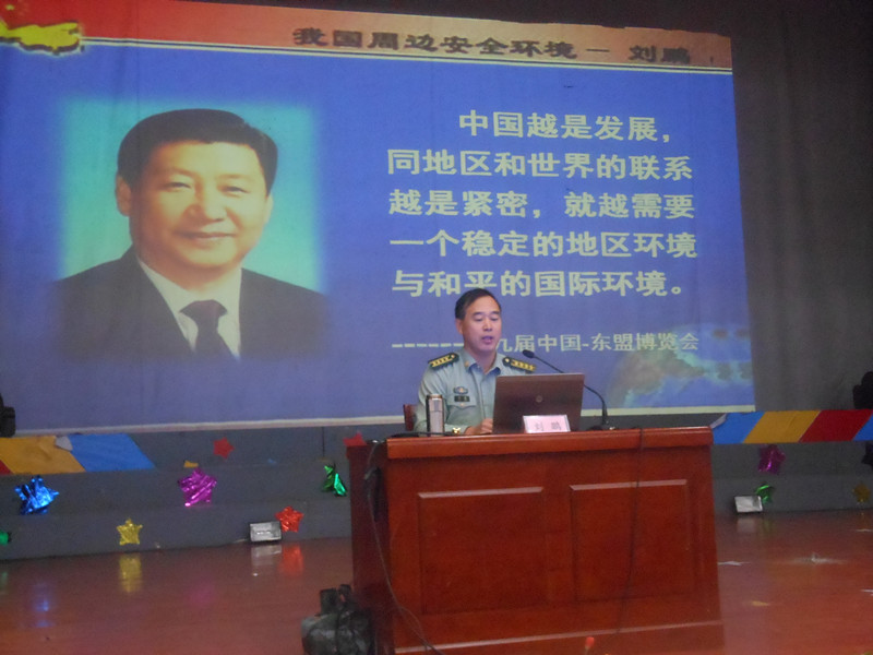 今年,学校继续聘请了5位在二级学院负责新生军训工作并具备相关业务能力的行政副院长给学生授课,授课内容围绕中国国防、军事思想、国际战略环境、军事高技术与信息化战争等5个方面全面展开。同时,学校还邀请到济南军区综合训练基地学生军训教研室主任刘鹏大校、济南军区综合训练基地学生军训教研室甘霖大校分别为学生做了题为《我国周边安全环境》和《新概念武器》两场专题报告,学生反响热烈、报告取得良好效果。