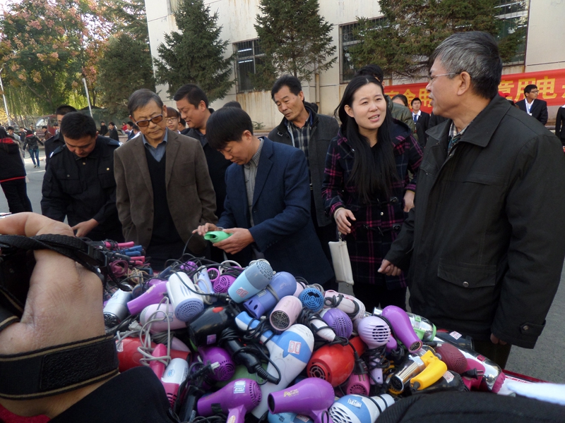 活动现场展出了近期学生处、各二级学院在学生公寓管理检查中发现的各种违禁物品及由学院大学生宿管会、各二级学院宿管会同学精心准备的以“消防安全”为主题的安全宣传展板。活动中,李崇银副院长指出“安全责任重于泰山”,他强调一定要加大对违禁物品的检查力度,排除安全隐患,确保全校师生的生命、财产安全,同时要加强安全教育,告诫全校学生要提高安全意识,远离危险物品。活动现场的学生通过观看展览,加深了对违禁物品的认识,纷纷表示:今后不再将违禁物品带进公寓,同时也会提醒和告诫身边同学不要携带违禁物品进入公寓。随后,各位领导带头在写有“真爱生命,防范未然-拒绝使用违章电器 从我做起”的横幅上签下自己的名字,以示对此次活动的支持,广大同学积极响应,纷纷提笔签名。