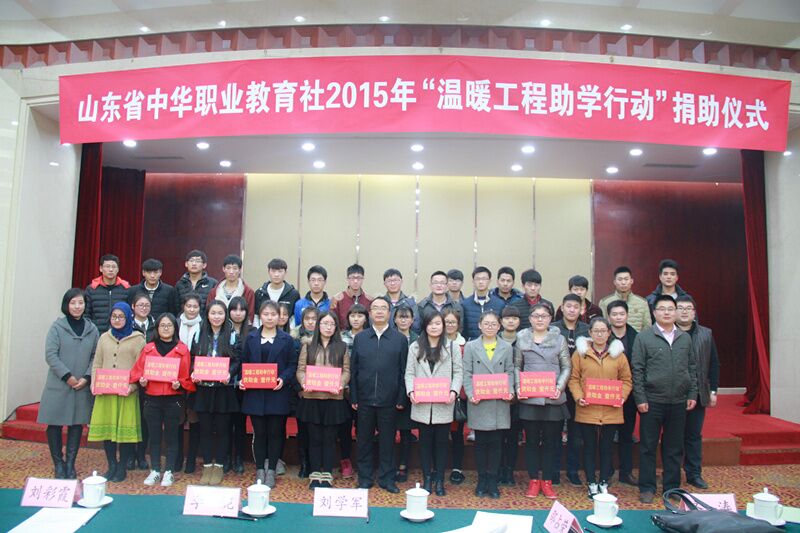 2015年12月10日 下午,“温暖工程助学行动”捐助仪式在山东大厦举行。省政协副主席、民建省委主委、省中华职业教育社社务委员会主任郭爱玲,中共山东省委统战部副部长牟强,省中华职业教育社副秘书长朱令珍,省中华职业教育社秘书长孙大川,365官网党委书记、院长夏季亭在主席台就坐。