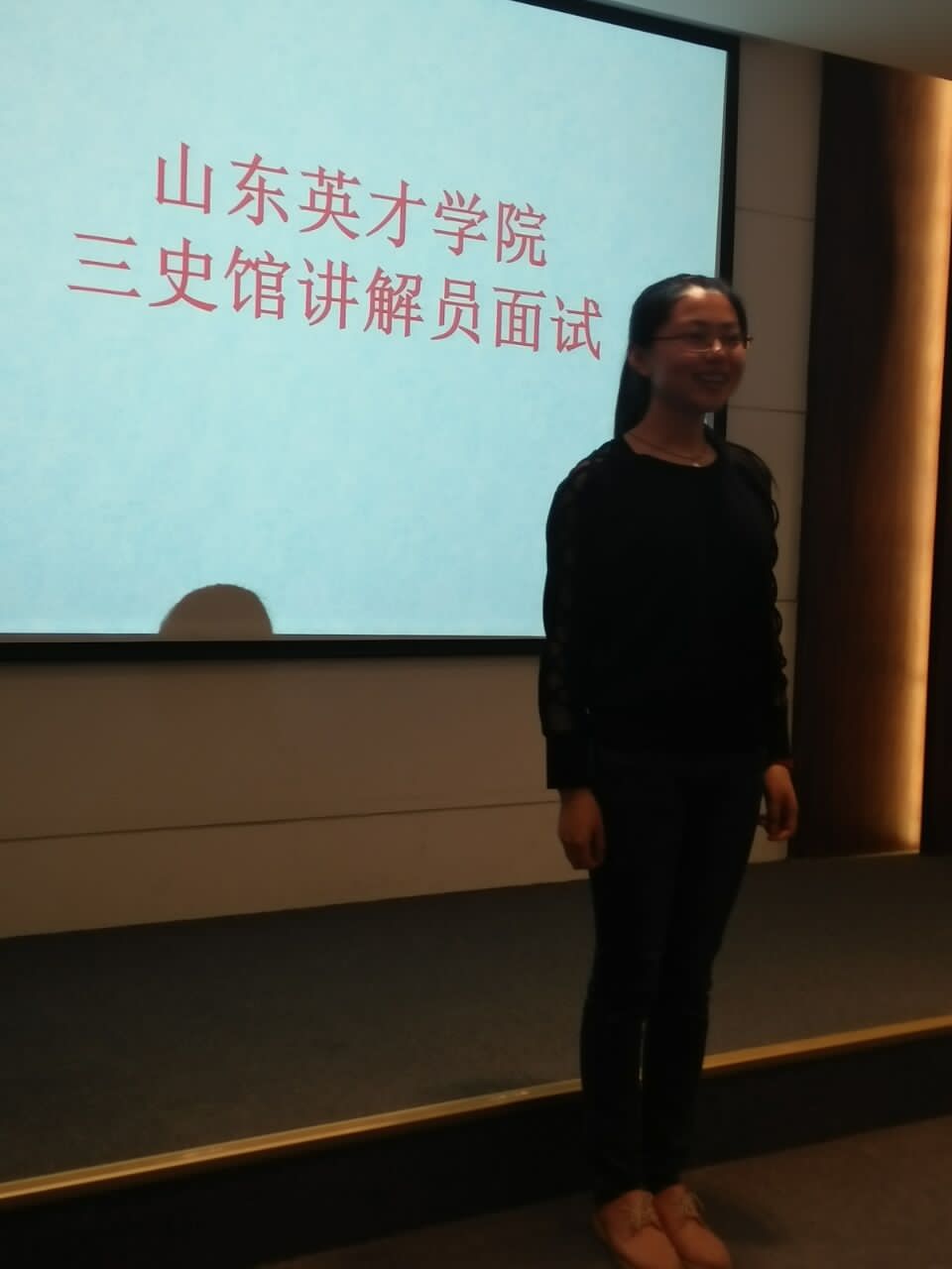 教育教学部毕璇老师,胡悦、季佳睿、戴少博、丁妍、王超担任本次面试的评委,16位来自各二级学院的同学参与本次面试。面试更分为三个环节,自我介绍,3分钟模拟讲解,评委点评。不同的介绍风格展现了面试者独特的个人魅力;国史馆3分钟模拟讲解费时最长,也是本次面试的核心部分,面试者用已学习知识进行讲解,刘晨佳同学语言流利、时刻面露微笑的表现给大家留下了深刻印象。在评委的提问中,有的激情四射,对答如流,对于工作未来,早已规划出美好蓝图;有的吱吱呜呜,过于紧张,心中纵有万千想法,也在尽自己最大的努力表现自己。