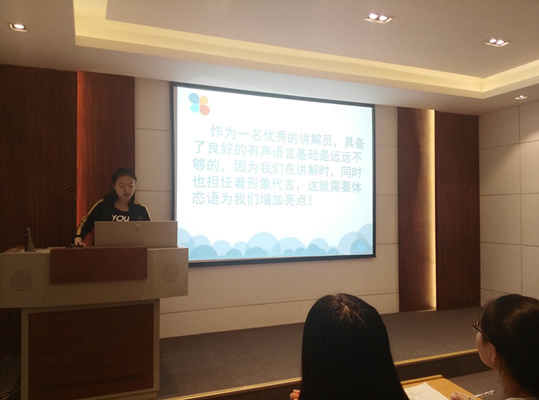 为确保本次培训取得实效,教育教学部毕璇老师精心组织策划,由季佳睿、戴少博、丁妍、王超进行培训以及实战指导。本次培训课程分为4个板块,分别为:讲解员基础理论知识、临场应变能力、形体训练以及普通话训练指导。通过教学互动的形式深化教学成果。授课过程中,他们深入浅出、声情并茂地系统培训了讲解员的基础知识,应具备的综合素质、仪表形象、日常接待、语言表达技巧和讲解汇报材料等内容,培训气氛活跃,学员受益匪浅。