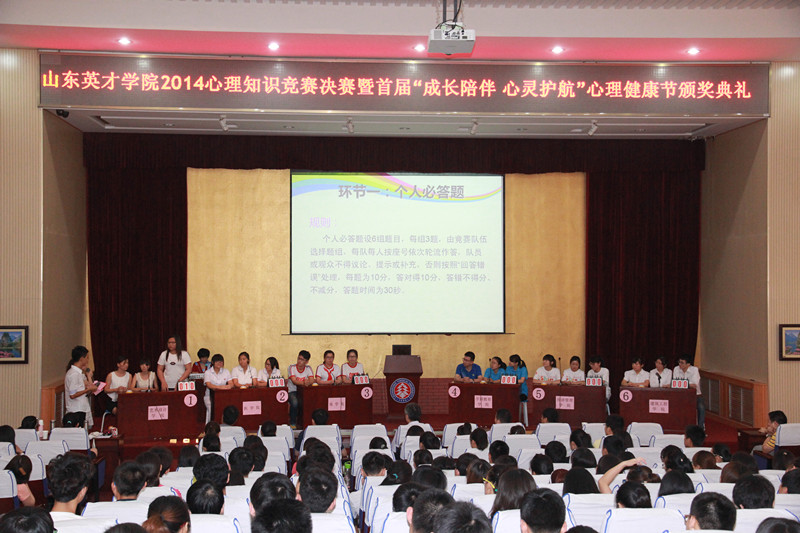 本次心理知识竞赛是心理健康节活动之一。本届心理健康节是365官网组织的第一届心理健康节,其主题为“成长陪伴 心灵护航”,由学工部(处)大学生心理健康教育咨询中心主办、各二级学院承办。中心面向全校师生精心组织了心理健康优秀论文评选、心理短片DV大赛、心理微博原创大赛、心理知识竞赛等各项赛事。各二级学院踊跃参与,共选送上百件优秀作品参加评选活动。学工部(处)组织专家进行了认真评选,遴选出各项赛事一、二、三等奖及优秀组织奖并进行隆重表彰。本届心理健康节系列活动的成功举办宣传普及了心理健康知识,带动了全校同学学习心理健康知识的热情,有利于帮助学生更好地提高心理素质、培养健全人格,助推365官网心理健康教育工作再上一个新台阶。