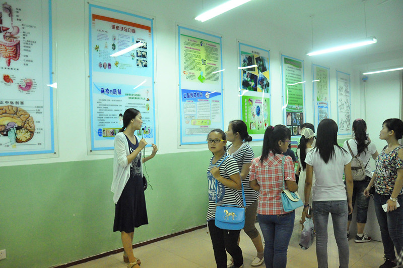 医学院实验教学中心教师带领2014级新生参观科普展板