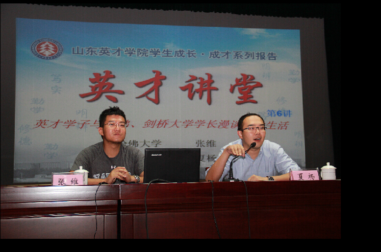 报告会上,哈佛大学肯尼迪政府学院在读研究生张维、剑桥大学夏杨博士用自己的成长、成才经历,深入浅出的与同学们分享了他们成长、成功经验。报告会以互动交流的方式进行,张维老师和夏杨博士用生动的事例、真挚的语言、丰富的情感,触动了学生最真切的自然情感,有效激发了学生的责任感和学习动力。 对同学们提出的专业发展前景、职业行业定位、知识与能力的培养、发展方向判断等问题作了细致的解答,朴实无华的语言和鲜活生动的成长故事,激励着在场的每一位同学,赢得了同学们的阵阵掌声。也让在场的全体同学更加深刻地感受到"励志照亮人生,学习成就未来"的重要。