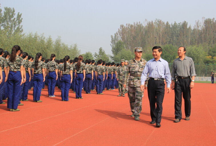 9月19日上午,学院副院长、军训领导小组副组长张宗胜副教授,在承训部队教官和学生处曲建利副处长及各二级院军训负责人陪同下,检查指导北校区2014级新生军训工作。