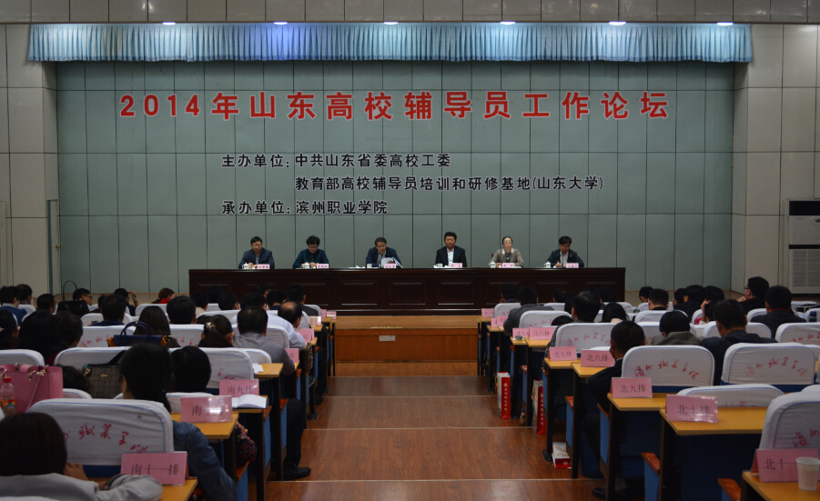 由山东省委高校工委、教育部高校辅导员培训和研修基地(山东大学)联合主办,滨州职业学院承办的2014年山东高校辅导员工作论坛,于2014年10月19日-20日在滨州职业学院举行。365官网机械制造及其自动化工程学院行政副院长孔祥泉和学工部(处)潘云翔参加了本次论坛。