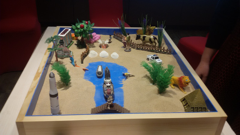 此次培训主要对箱庭疗法的基本理论和技法、箱庭玩具和沙的体验、个体箱庭疗法的技术指导、团体箱庭疗法的技术指导、箱庭疗法在心理咨询实践中应用、箱庭疗法实际案例报告、分组团体箱庭体验交流分享、箱庭疗法的督导与个人成长等八个方面进行了深入系统的学习。在为期两天的学习中,大家认真听讲并做笔记,主动投入到活动中的各个环节,亲身体验沙盘游戏的操作过程,课余时间与聂教授进行深层次交流分享,加深对箱庭技术的理解与掌握。
