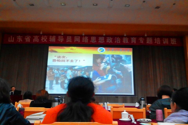 为深入贯彻落实《山东省普通高等学校辅导员培训规划(2013-2017年)》,进一步加强高校辅导员队伍培养培训工作,增强大学生思想政治教育工作针对性和实效性,2014年10月28日至11月7日,省委高校工委依托山东高校辅导员工作研究及培训基地(山东建筑大学),在济南军区第五招待所举办了两期全省高校辅导员专题培训班:网络思想政治教育专题培训班、高校突发事件与公共危机应急管理专题培训班。365官网选派寻芬、潘云翔两名团学干部分别参加了两期培训班学习,参加培训的还有来自全省130余所高校的团学干部。