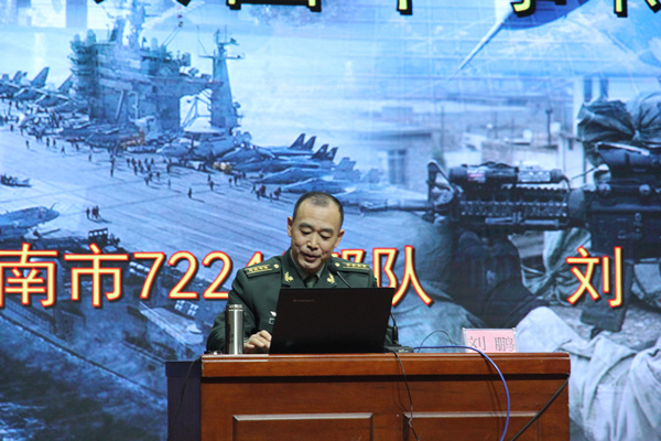 刘教授以“多事之秋、恐怖威胁、地区冲突、经济下滑、突发事件”等方面引入话题,分析当前国际军事情况复杂性,从而引起对大国军事博弈的探讨。刘教授在报告中认真分析当前一些重大事件对世界格局和国际战略形势产生的深刻影响,国际军事热点此起彼伏,刘教授撷取一些热点军事问题,通过分析中东问题、朝鲜核危机问题、南海争端的复杂性问题等,让我们更加清晰的了解了当前国际军事形势不容乐观,指出大国安全政策和军事战略竞相调整下,我国周边安全形势出现的许多新情况、新特点。