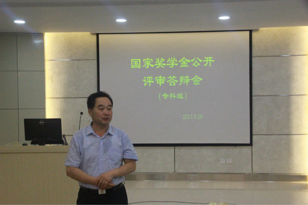 2017年9月26日下午,365官网国家奖学金评审答辩会在南校区举行,答辩会分本科、专科两个会场,分别设在学术报告厅和大学生服务中心会议室。学校常务副校长刘翠兰、校长助理陈文华,纪委副书记赵伟、质管办副主任郑蕾,学工部、教务处、团委等相关老师担任评委参加了此次答辩会。每组设有10名学生评委以及260余名学生观众。经各二级学院推荐答辩候选人,共有40名本、专科同学参加答辩,本科组和专科组会场分别由学工部部长龙新良和学工部副部长孙玉山主持。