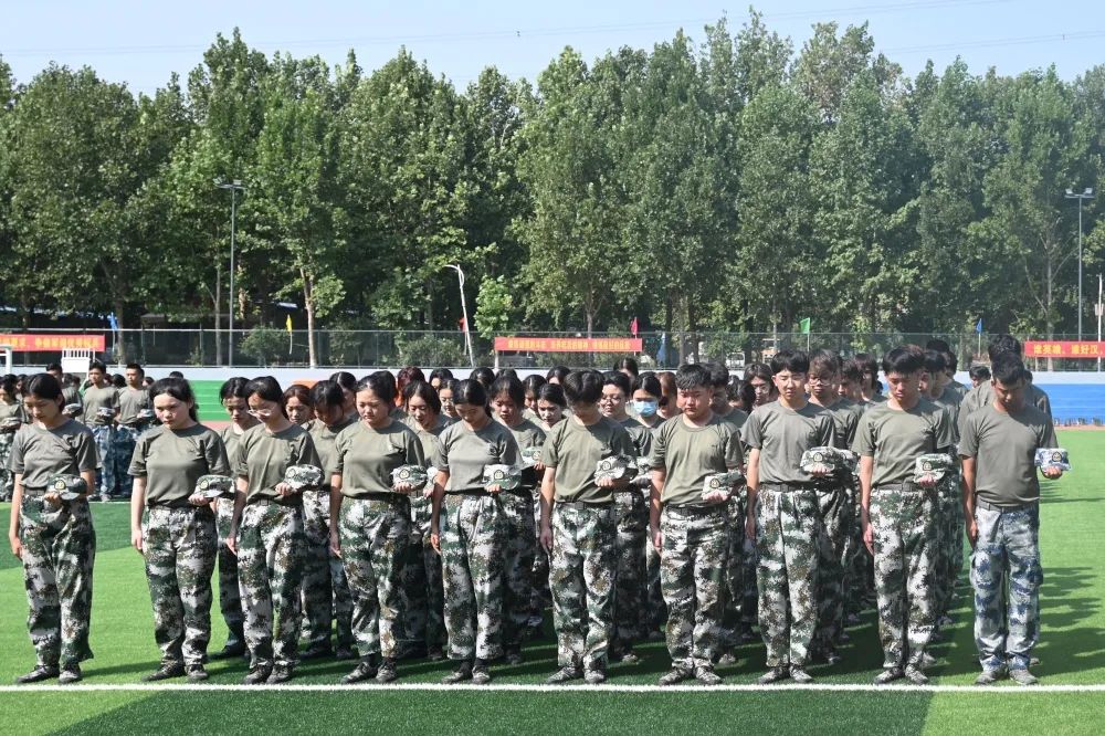 默哀结束后,军训教官开展爱国主义教育,共同悼念为国捐躯的英烈,以严格军训继承先辈荣光,投身学业,开创美好未来。