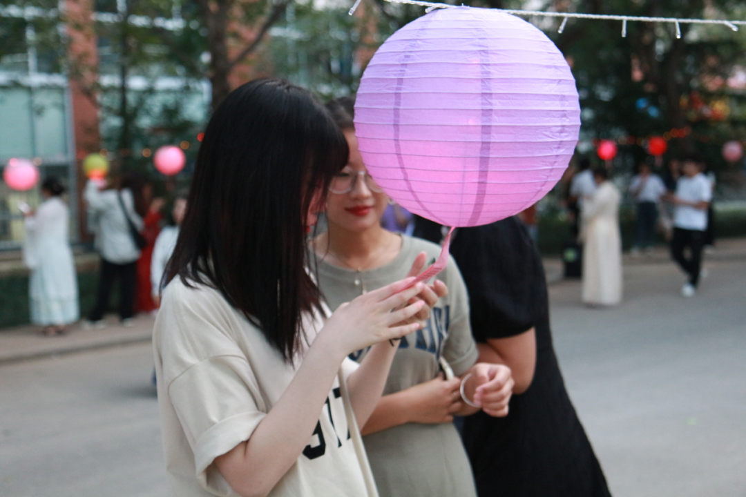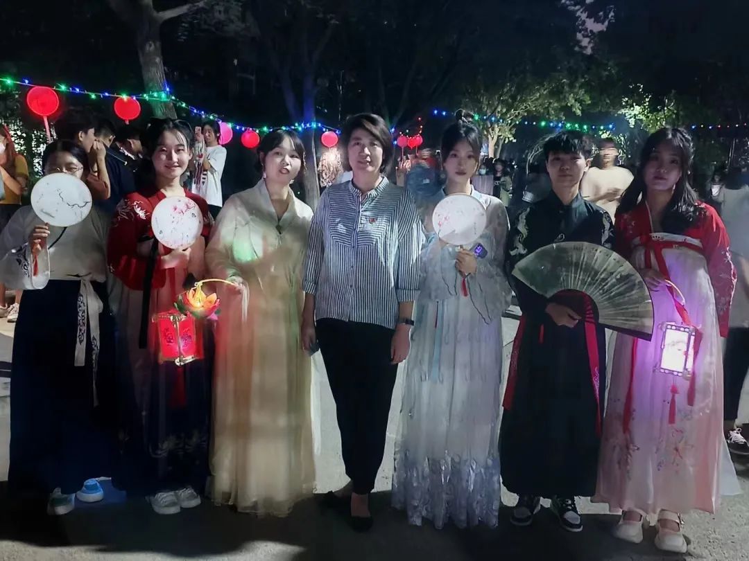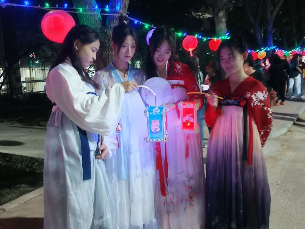 汉服是我国传统文化的瑰宝,华灯流转、云裙罗裳、绮罗珠履,汉服游园会是传统韵味与时代光影的相汇,同学们身着汉服与小伙伴共同游园,一起感受中秋特有的文化与乐趣。