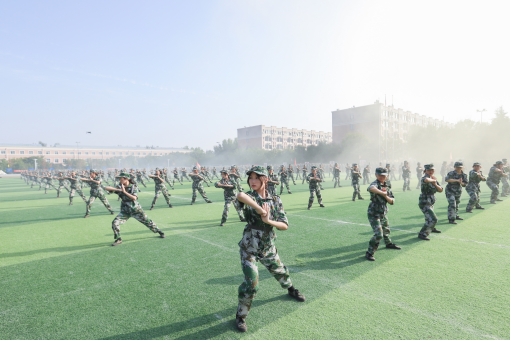2022级新生分列式展示,各方队成员以整齐划一的动作、昂扬向上的精神面貌、刚毅挺拔的姿态,迎着清晨的朝阳,全面展示了为期15天的军训成果。刚猛有力的应急棍术,展现了我军敢打必胜,首战用我的战斗气概;擒敌拳中学生灵活的身姿,自由变换的拳法,随着一声令下,他们迅速出击,淡去了胆怯与扭捏,展现出新生蓬勃的飒爽英姿;匕首操表演的学生巾帼不让须眉,“杀、杀、杀”,铿锵响亮,整齐划一的动作,展现青春的热血和刚毅;旗语操学生用整齐的动作,一挥一扬之间,传达着特殊的信息,冷静果断刚毅有力。
