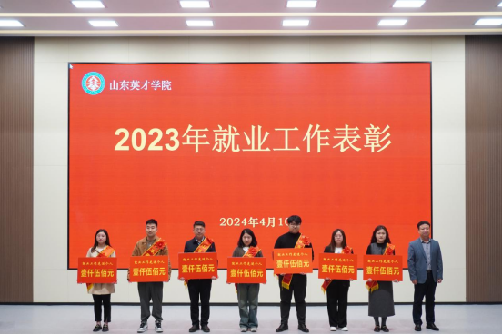 招生就业处副处长尹逊坤宣读《关于表彰2023年就业工作先进集体和个人的决定》,与会领导为获奖集体和个人颁奖。
