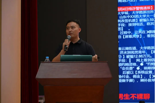 安全管理处处长朱良增、北校区综合办主任高奎分别在南北校区为2024 级新生开展了校园安全及法治教育培训,他们引用安全事故中的一些典型案例,切实加强同学们对人身、财产、消防、交通及自然灾害防范的重视。通过详细介绍学校物防、人防、技防三管齐下的安防系统,帮助同学们树立安全意识,重视安全问题,将安全观铭记在心中,落实在行动中,共同守住学校安全稳定的底线、红线。