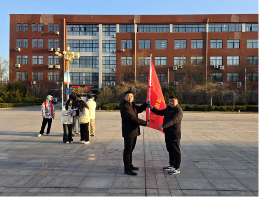 学生工作处副处长杜志玉为工学院授旗,不仅是对工学院在身心素质训练工程中卓越表现的认可,更是对其积极组织、广泛动员学生参与各类身心训练活动的肯定。工学院在日常教学与实践中,营造了良好的身心发展氛围,激励学生在学业进步的同时,注重身心健康,全面提升个人素养。