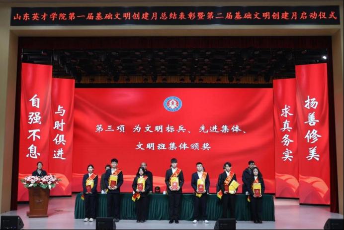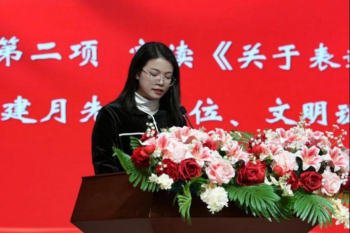学生工作处处长张瑞君宣读《关于表彰第一届大学生基础文明创建月先进集体、文明班集体、文明标兵的决定》,对在基础文明创建月活动中表现突出的集体和个人进行了表彰。