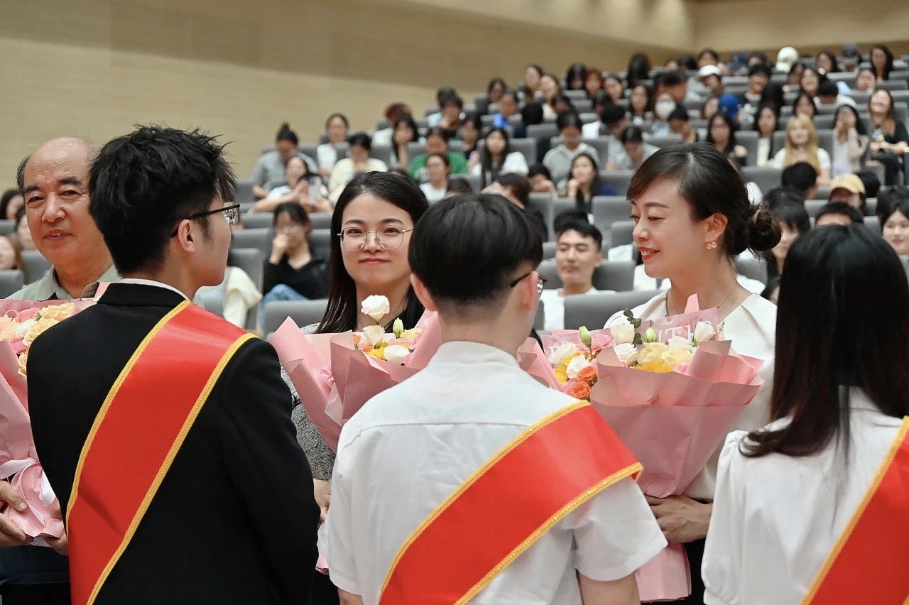 在献花环节,“十佳大学生”及“十佳大学生提名”获得者为家长和领导献上鲜花,用芬芳传递感恩与爱意,现场洋溢着温馨与感动。