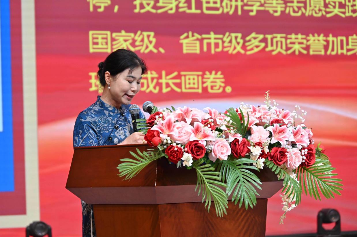 最后,执行校长王晓娜总结讲话。她对获奖同学表示祝贺,高度赞扬了他们的优秀表现,并希望全体学生以榜样为引领,传承英才精神,在未来的道路上砥砺前行。