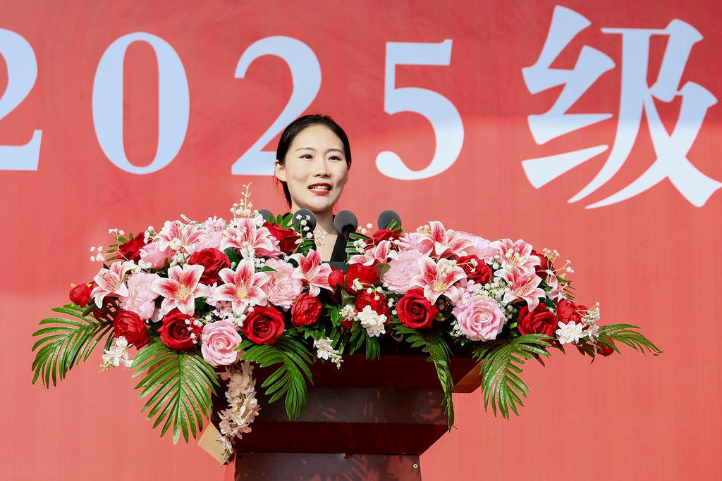 辅导员代表刘珈宜、孟繁昊欢迎新生加入英才大家庭,鼓励他们在未来学习中明确目标、脚踏实地,同时表示全体辅导员将全力为新生成长成才保驾护航。