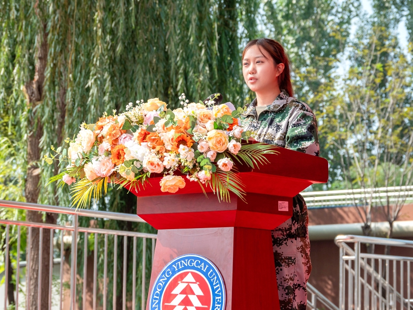 学生代表吴帷鼎与程佳欣在发言中,分享了军训生活的收获与蜕变,畅谈了对未来的憧憬与规划,并代表全体新生庄严承诺:将以饱满的热情投身大学学习与生活,在英才这片沃土上淬炼品格、筑梦启航。