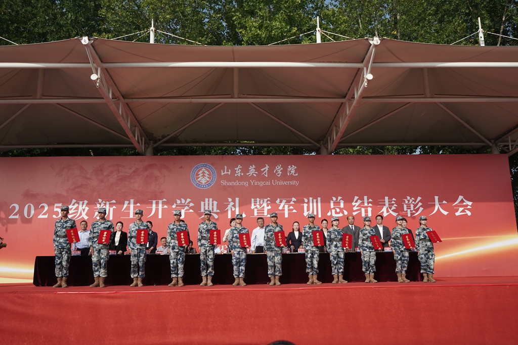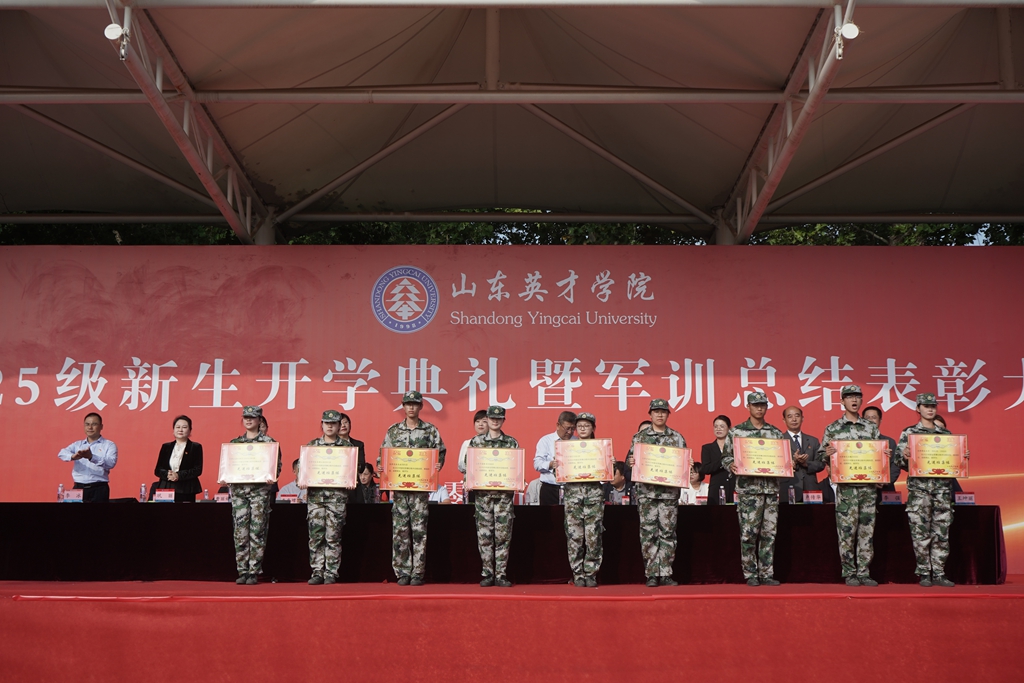党委副书记孙玉香宣读《关于表彰2025级新生军训优秀学员、优秀辅导员、优秀教官、先进集体的决定》。与会领导为军训先进集体和个人颁奖。