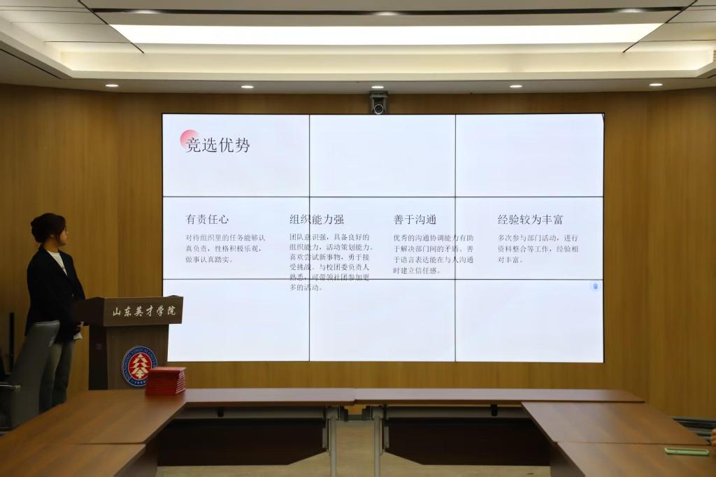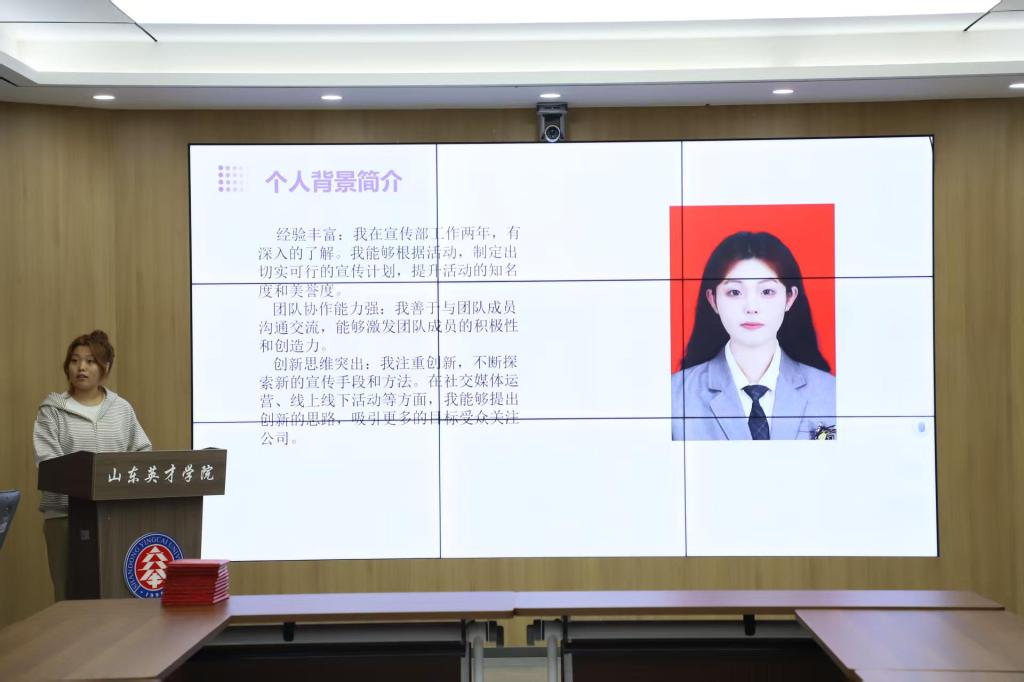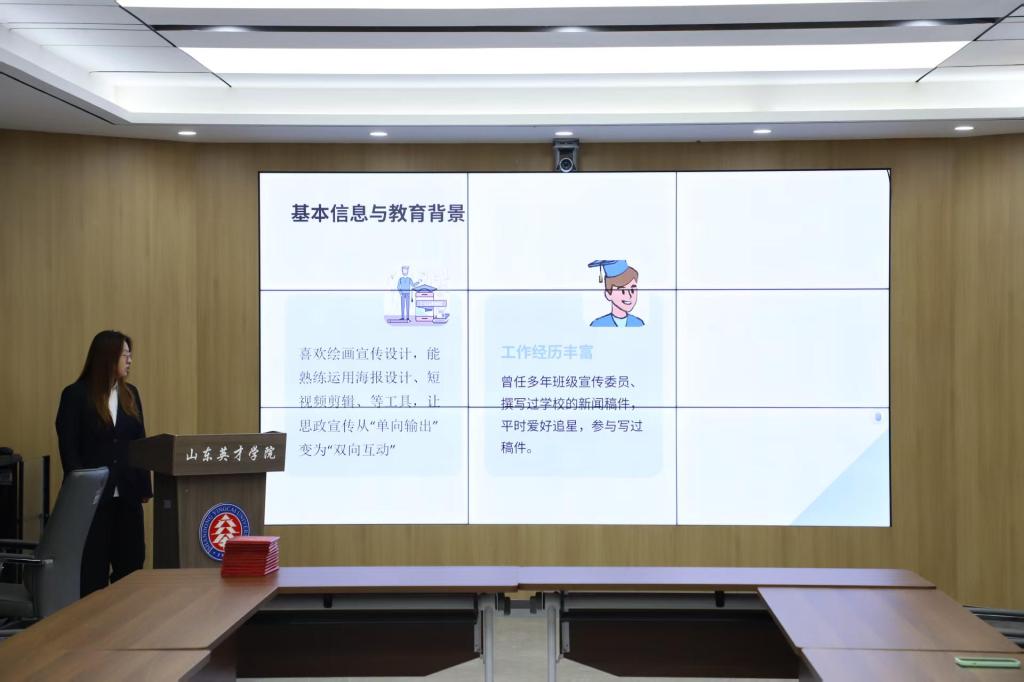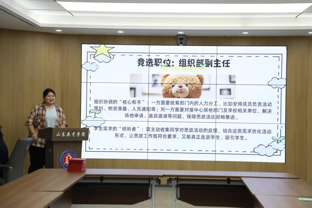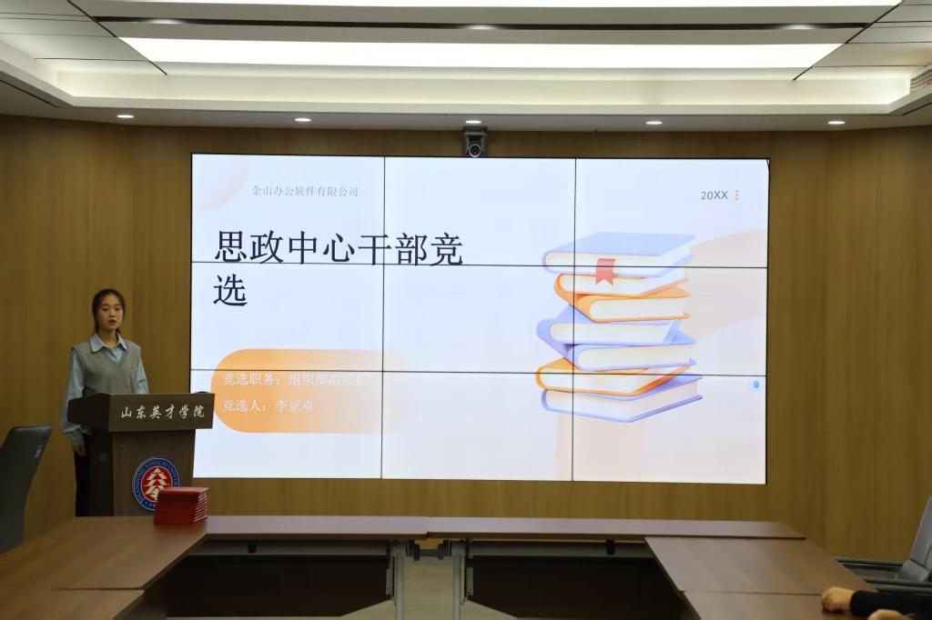 候选人依次上台演讲,竞选过程中,9位候选人依次上台,她们结合自身在大学生思想政治教育研究中心的工作经历,从理论学习、校园思政活动策划等实际工作出发,结合自身经历,阐述对岗位的认知、竞选岗位的优势、未来工作规划及创新思路。全体竞选人员展现出扎实的工作能力与强烈的责任意识。