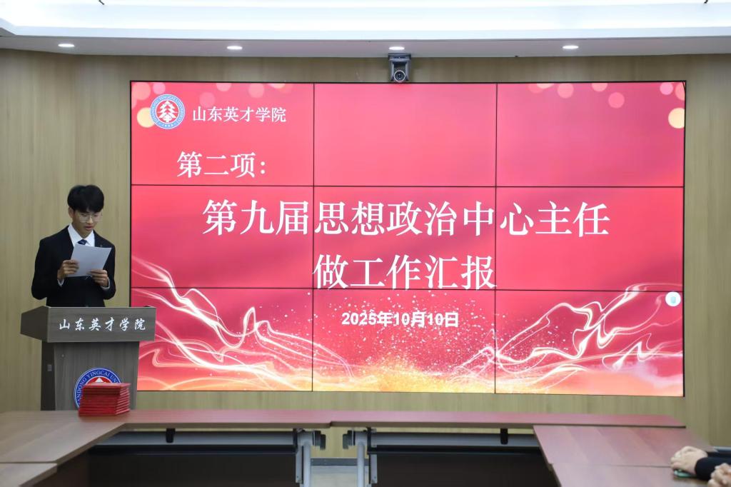 大学生思想政治教育研究中心第十届主任孙瑞哲代表新一届成员发言。将带领团队以“传承、创新、务实”为工作准则,在延续往届优秀活动的基础上,计划推出新举措,将大学生思想政治教育研究中心凝聚起来,成为既有思想高度也有团队温度的大家庭,进一步提升思政工作的吸引力与实效性,不辜负老师和同学们的信任。