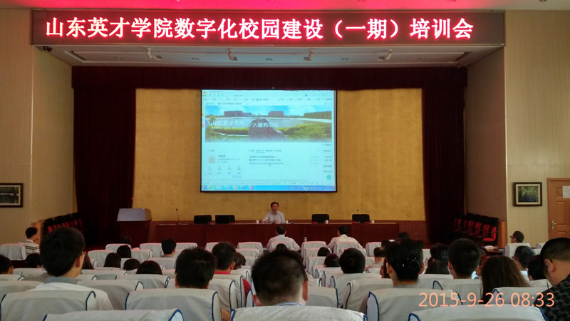 2015年9月26日上午,365英国上市网站官网数字化校园建设项目(一期)培训会在南校区学术报告厅举行。出席会议的有学校周忠副院长,财务处徐利民处长,人力资源处杨淑平处长,监察处赵伟处长,校办韩帮峰副主任及各单位信息化主管和信息管理员。信息技术中心李学军主任主持会议。