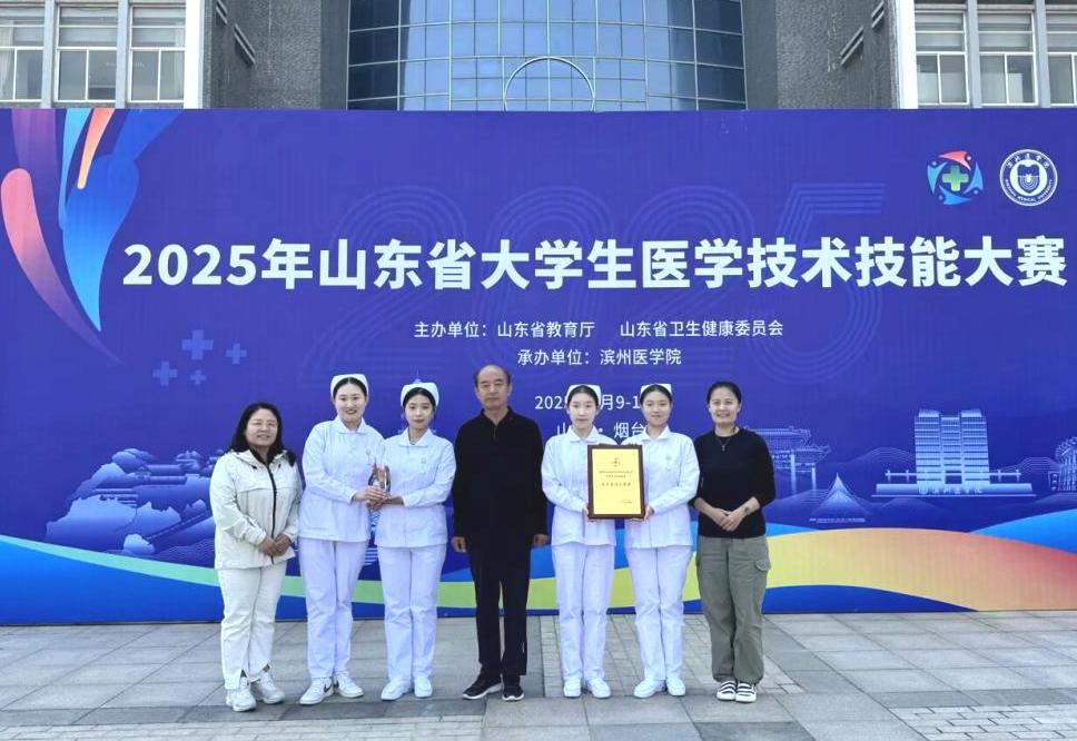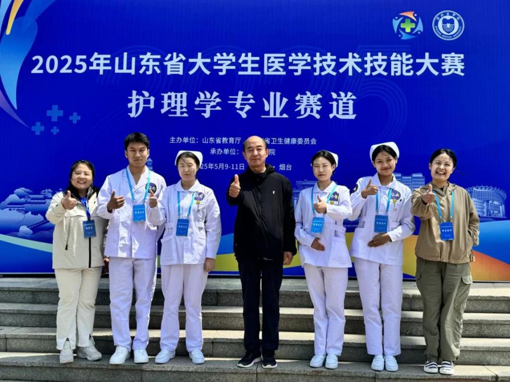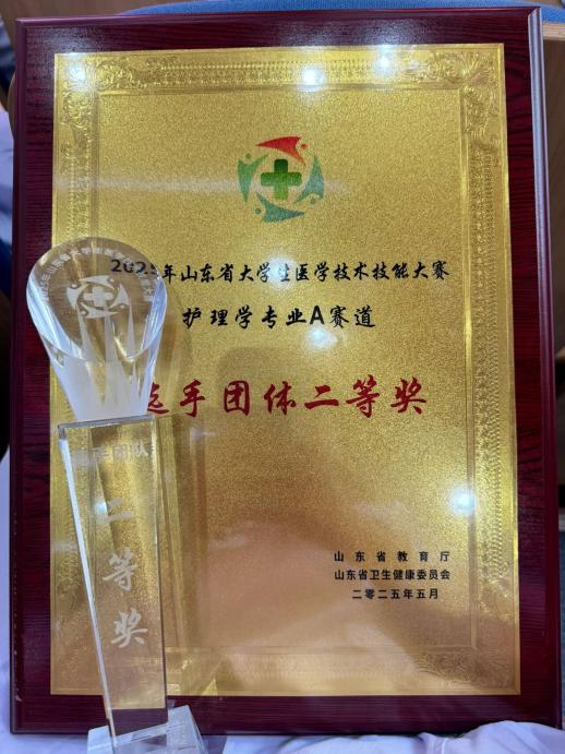 2025年5月11日,在2025年山东省大学生医学技术技能大赛的赛场上,医学院参赛团队展现了扎实的医学功底、敏捷的应变能力和卓越的团队精神,最终脱颖而出,斩获了护理学专业A赛道团体二等奖。